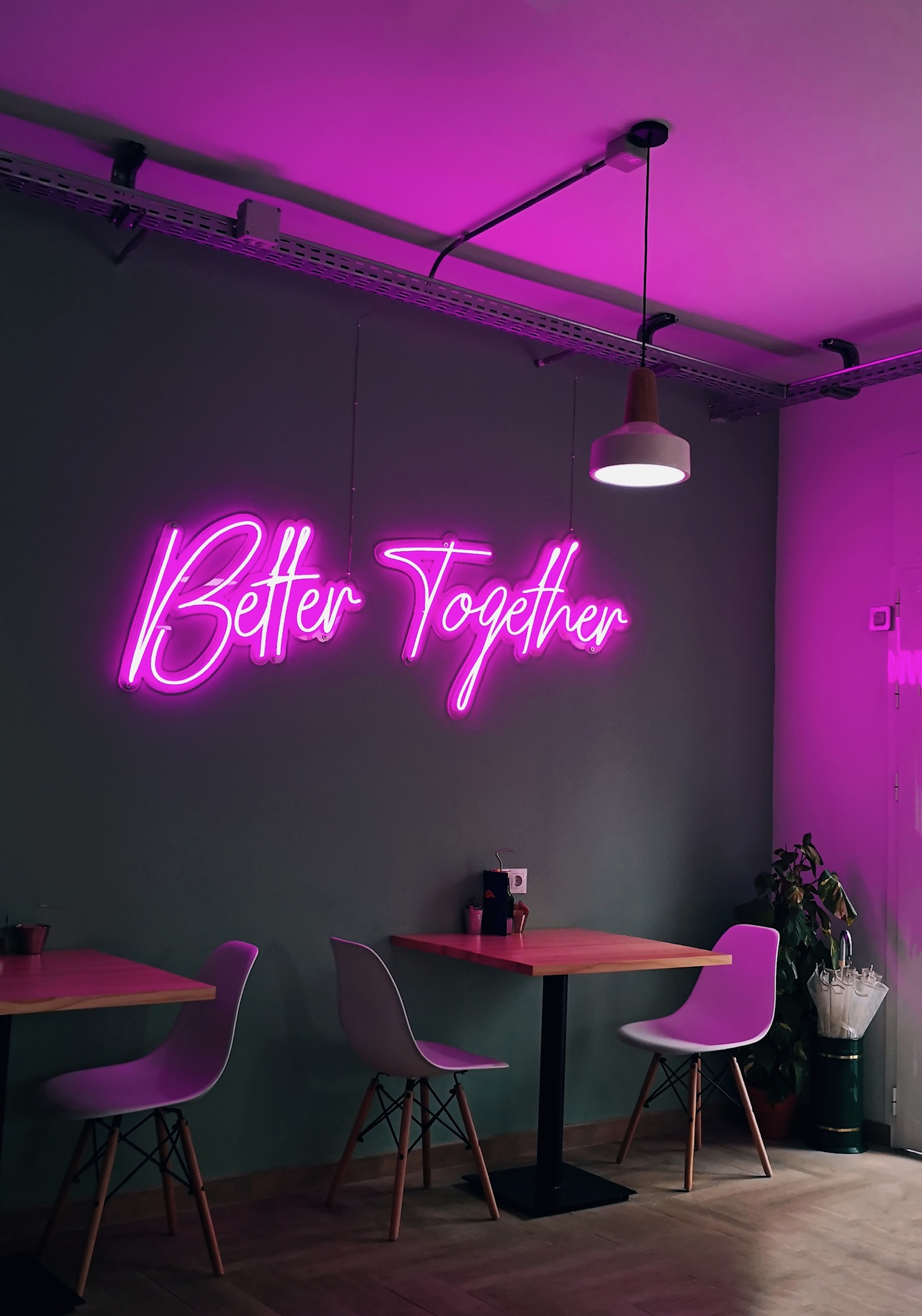 Brighten your world with our custom neon creations. Explore our gallery of bold, vibrant signs designed to light up any space with personality and style.